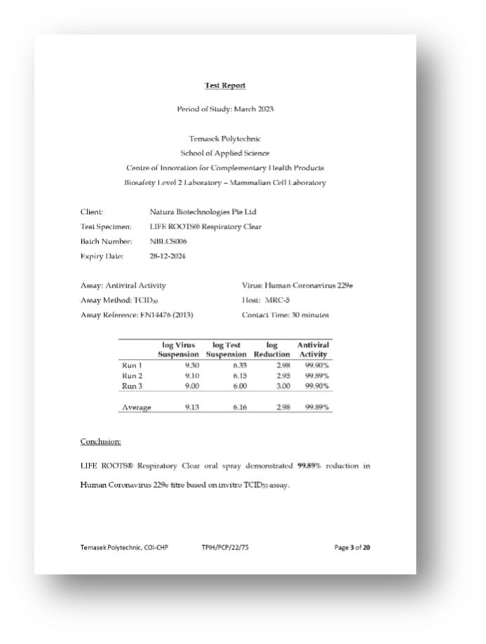 (Respriratory Clear Oral Spray) Invitro HCoV-229E Test (99.9%):