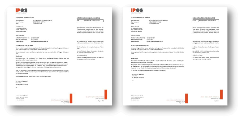 Patent filing notifications for Mucocare & Luncare: